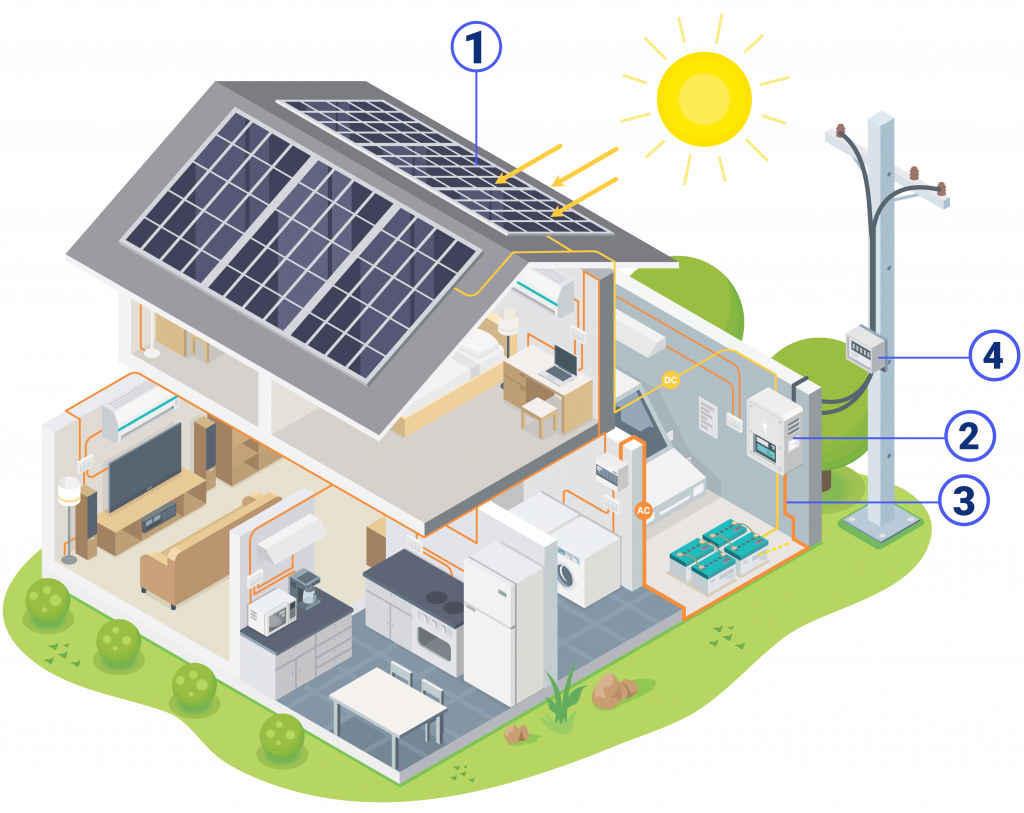 Porém há os casos de instalação off grid, em que o sistema de energia solar é conectado a um banco de baterias, e essa baterias alimentarão o imóvel na falta de energia da concessionária (esta é uma solução com um custo alto).